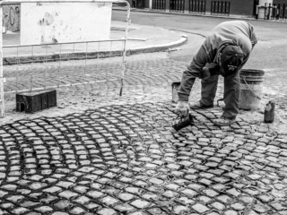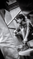 Amontonados entre los ladrillos que sostienen a la ciudad, rostros sin nombre se pierden en cada una de las miradas que los atraviesan. Los contornos se deshacen y conforman un nuevo paisaje homogéneo que desaparece después de cada nuevo enfoque. Crisis de la forma, despojo de las figuras. Escoria impura. Binaria oposición, ajedrez de luces y sombras. Otra búsqueda.